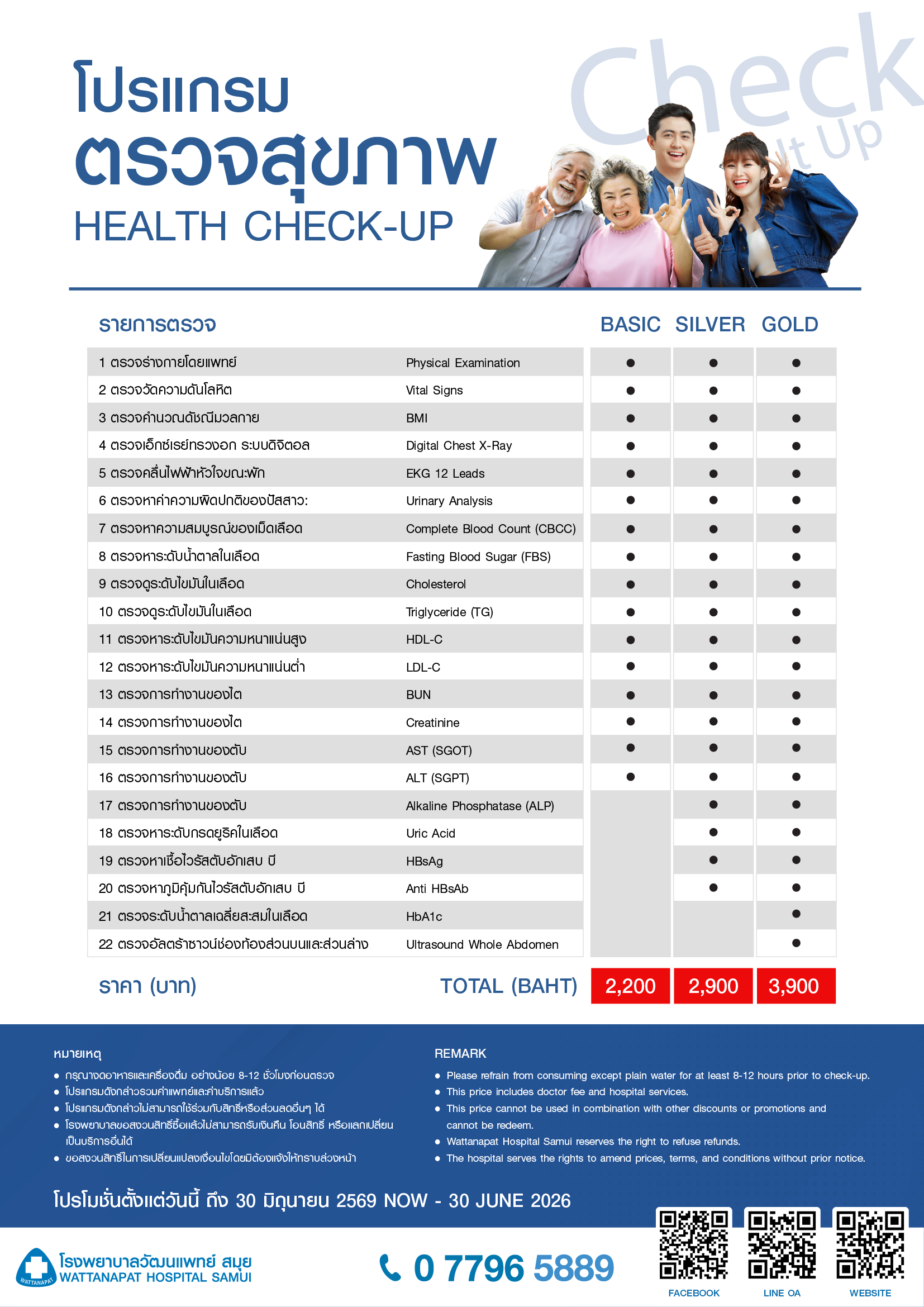 [ซื้อออนไลน์] แพ็กเกจตรวจสุขภาพ Silver