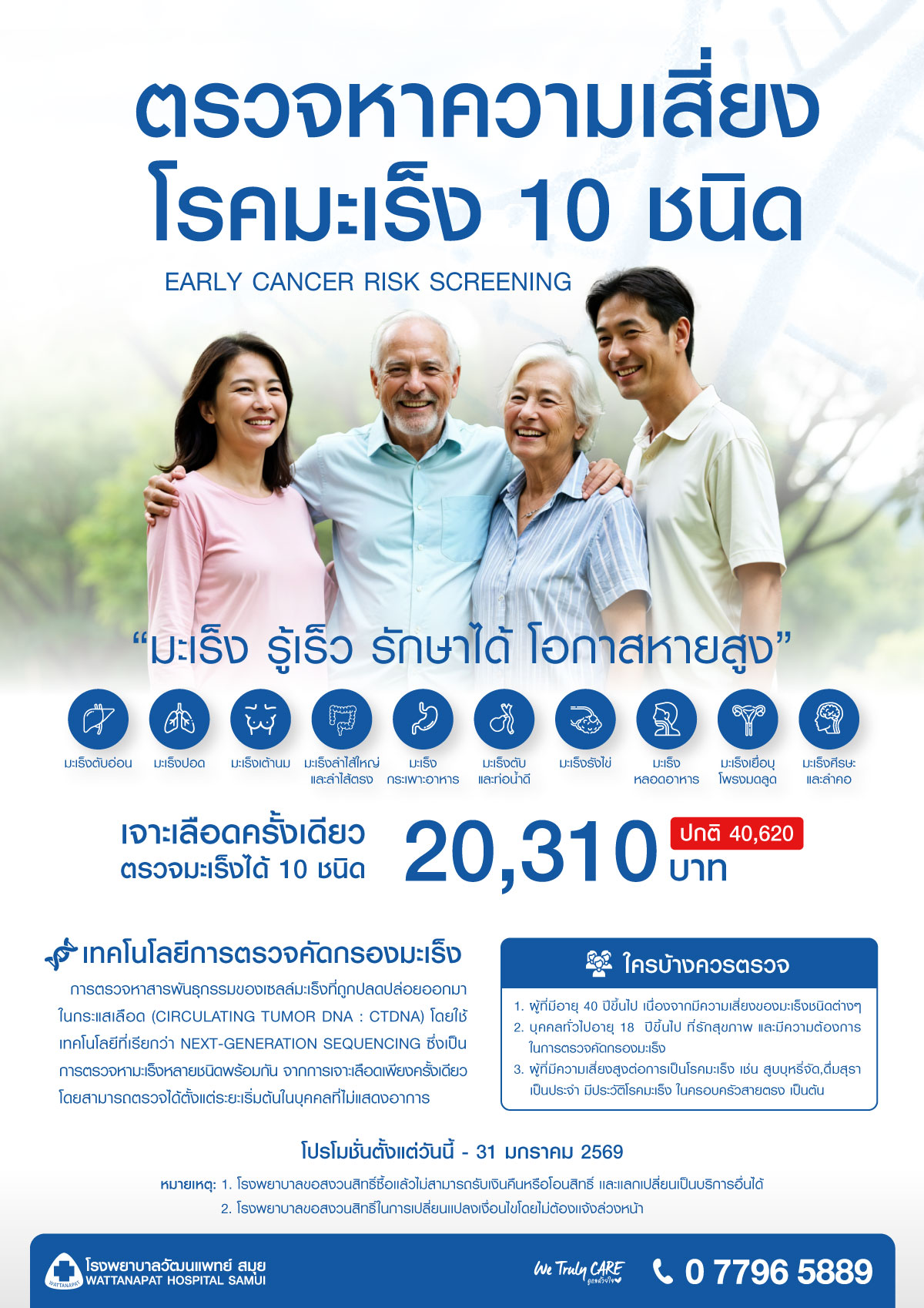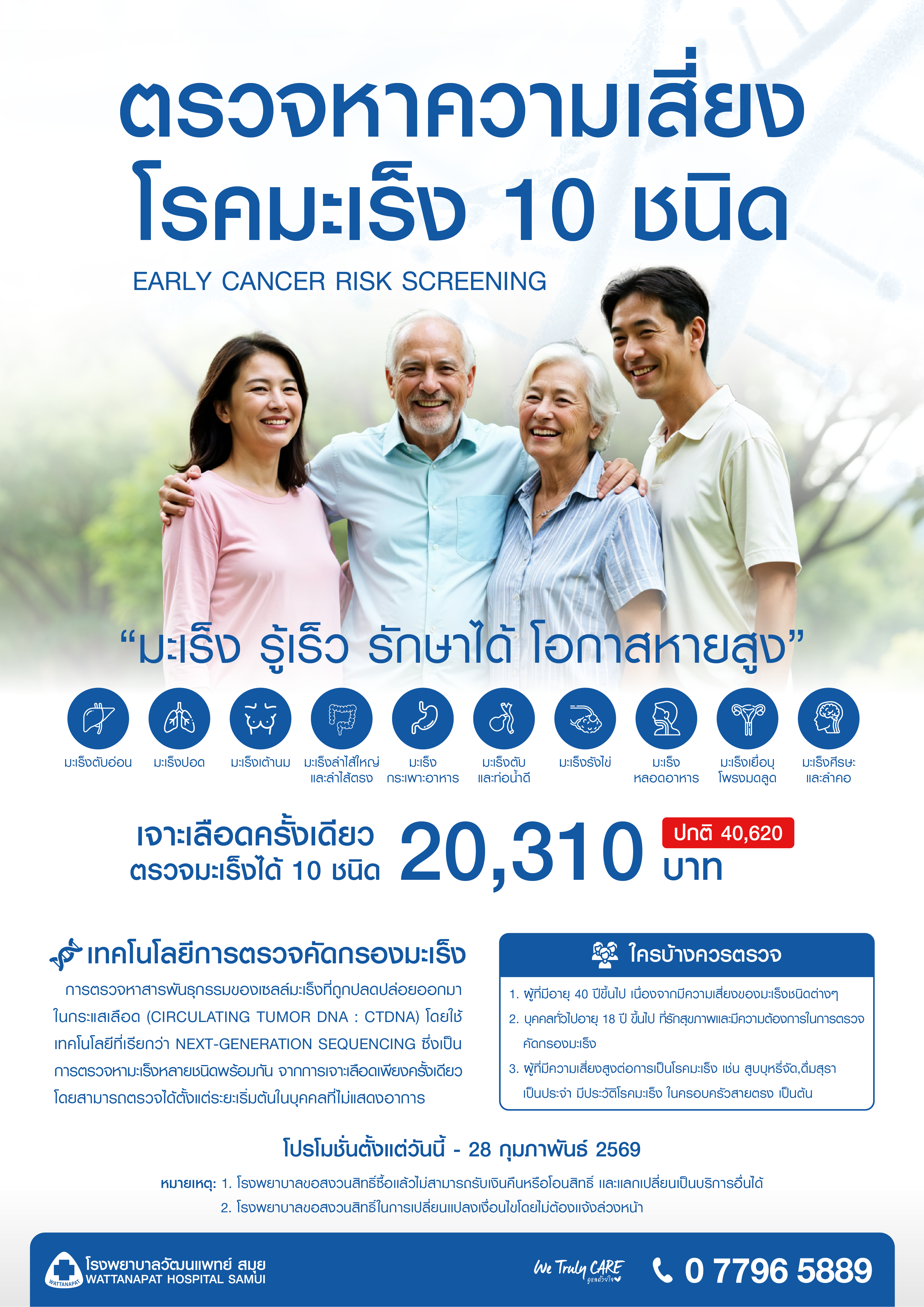 ตรวจคัดกรองหาความเสี่ยงโรคมะเร็ง 10 ชนิด Early Cancer Screening